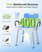- Innovative Bracing Designs for Certified 400 lbs Support: This shower seat for adults features a 4.5 mm thicker seat surface with a stable bracing design at the back. The 1.4 mm upper aluminum tubes and 3.5 mm lower aluminum tubes form a rust-resistant, thicker leg tube system that offers a max weight capacity of up to 400 lbs (certified by Intertek) for reliable support, making this bath chair a highly reliable option for your bathroom or tub. Suitable for users under 260 lbs and with a hip circumference below 52"