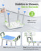- Thoughtful Designs for Added Security and Comfort: The shower seat for inside shower features EVA pads on the seat surface and seatback, while the arms are padded with soft foam, providing a non-slip and comfortable using experience. The seat is designed with 5 drainage holes to prevent water buildup, keeping it clean and dry. Additionally, the 2.2" wider non-slip feet ensure stability and security in wet bathrooms or tubs