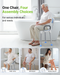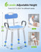 - Multiple Assembly and Height Options for Your Needs: With 6 height settings, this shower chair with arms can be easily adjusted from 23.5" to 28.5". The removable back and arms offer versatile assembly options to fit various individuals and needs. Dimensions: 18.4" (L) x 14.6" (W) x 23.5" (H). Weighing only 7.5 lbs, this shower stool for inside shower is easy to lift and move, suitable for the elderly, injured individuals, pregnant women, or anyone who prefers to sit while shaving their legs